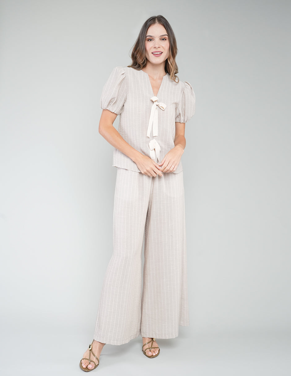 BLUSA AITANA A RAYAS BEIGE