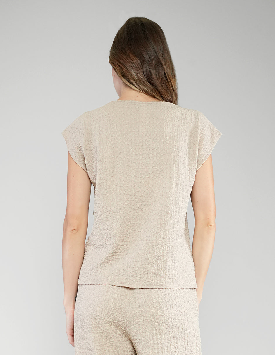 Blusa con escote redondo, manga cap y textura