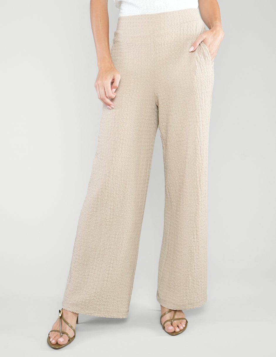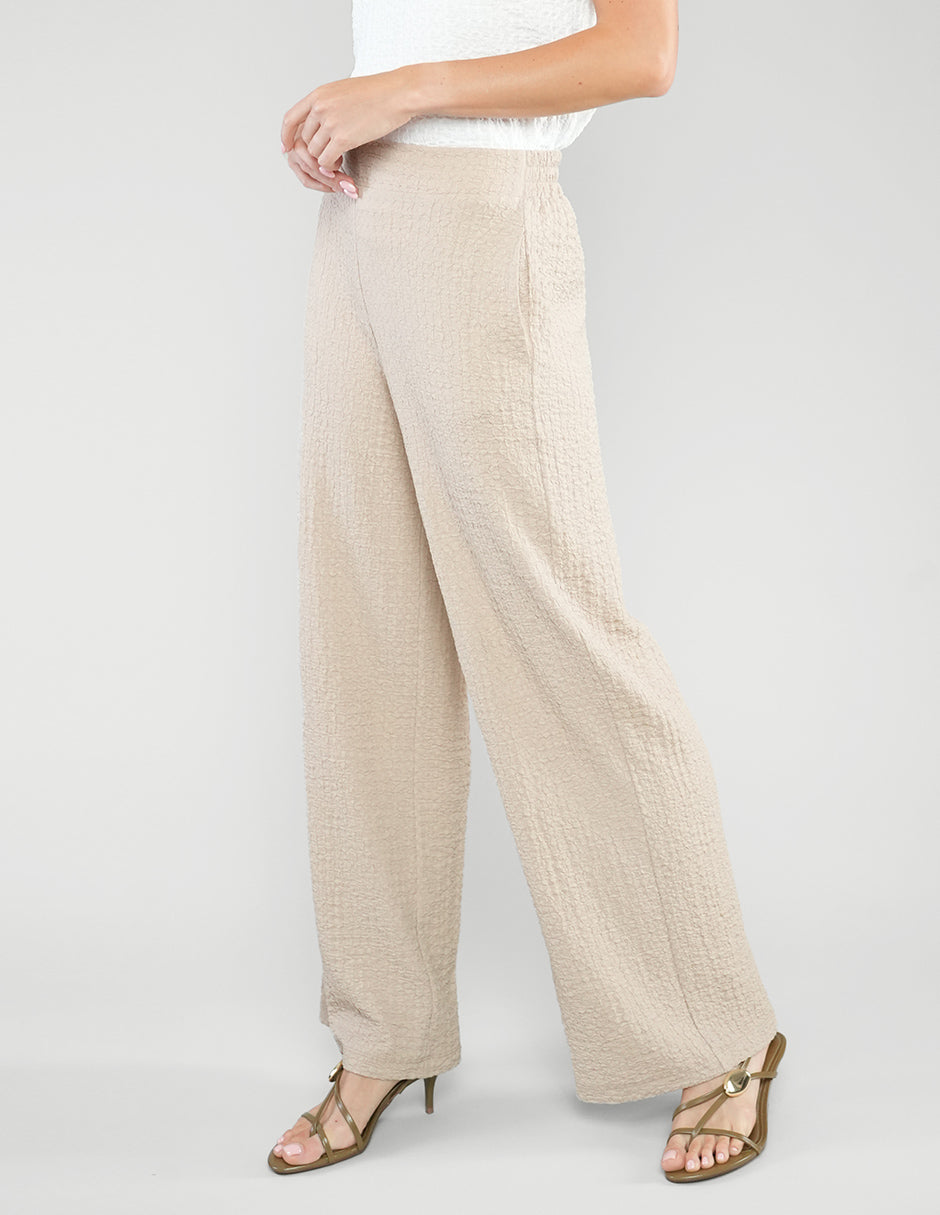 Pantalón wide leg con elástico en pretina trasera y bolsas de costado