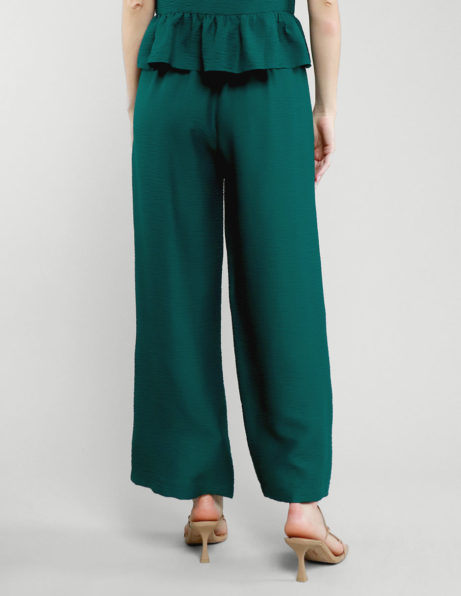 Pantalón con elástico en pretina trasera, bolsas de costado, botón y cierre al frnte