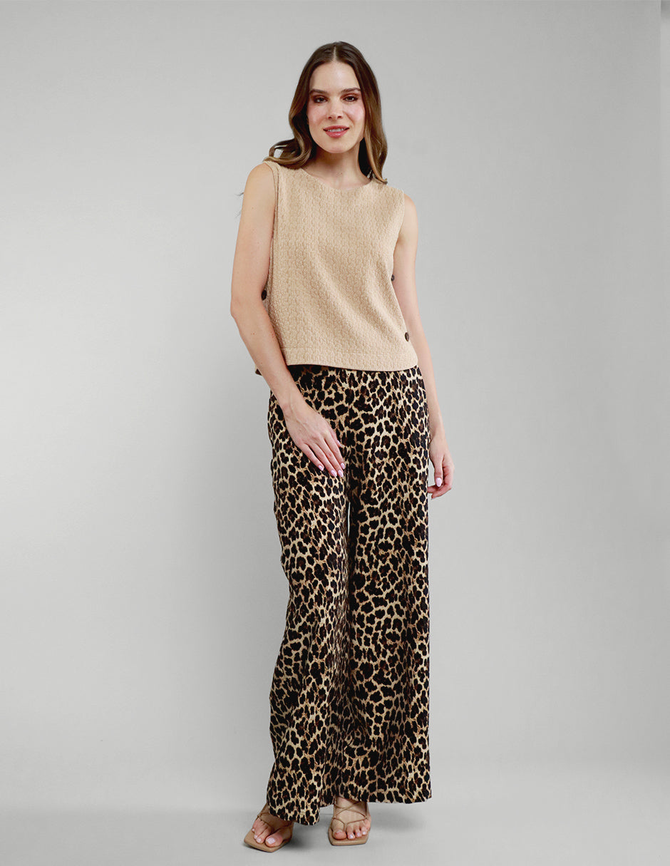 Blusa con cuello redondo, sin mangas, botones en costados y ruedo circular